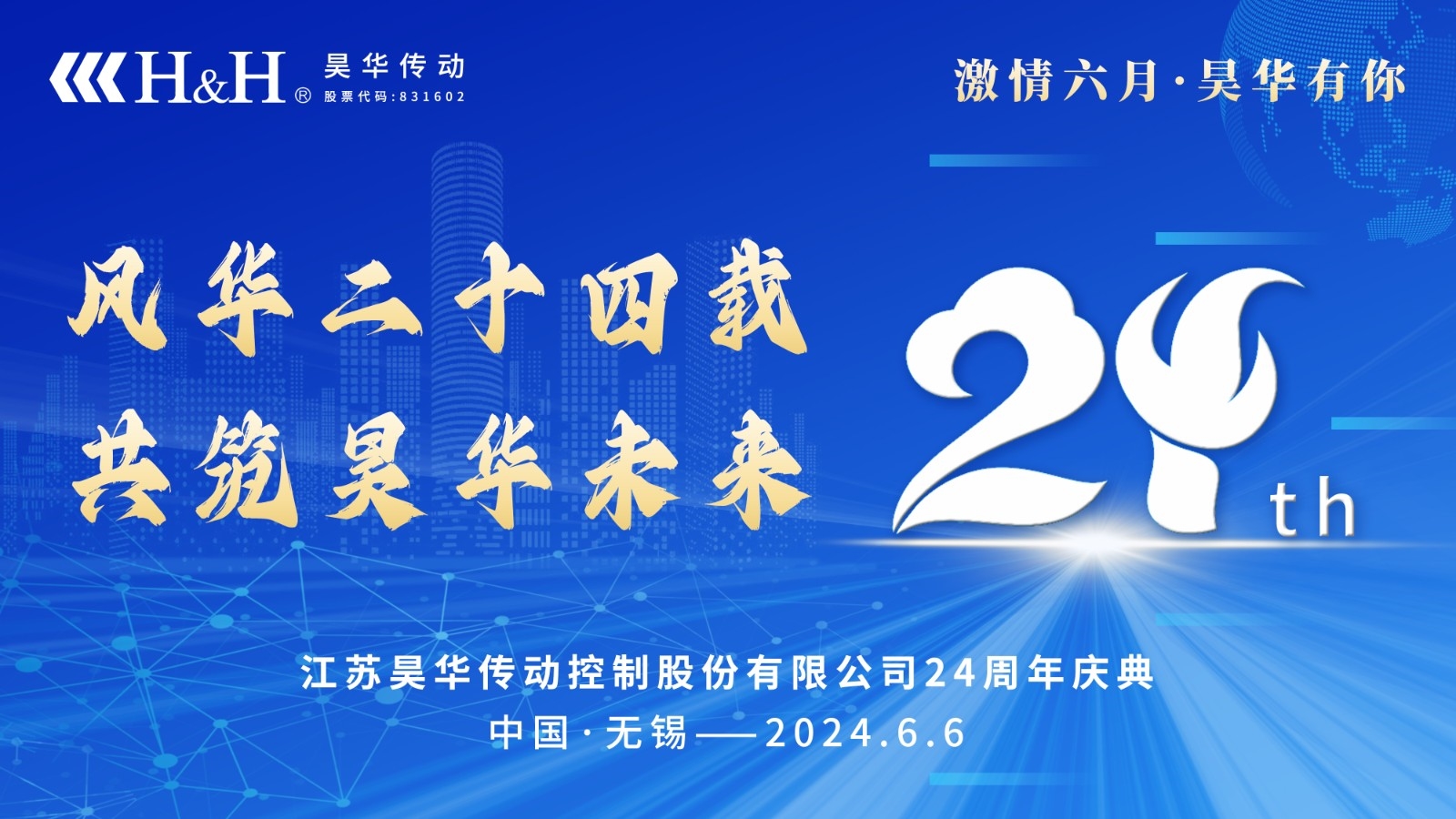 激情六月 有你同行|吳華二十四周年慶隆重舉行風(fēng)華十四載,共筑昊華未來。6月6號,吳華傳動迎來了自己的生日,往后我們將更加努力,更加拼搏,成就客戶,協(xié)作共贏!